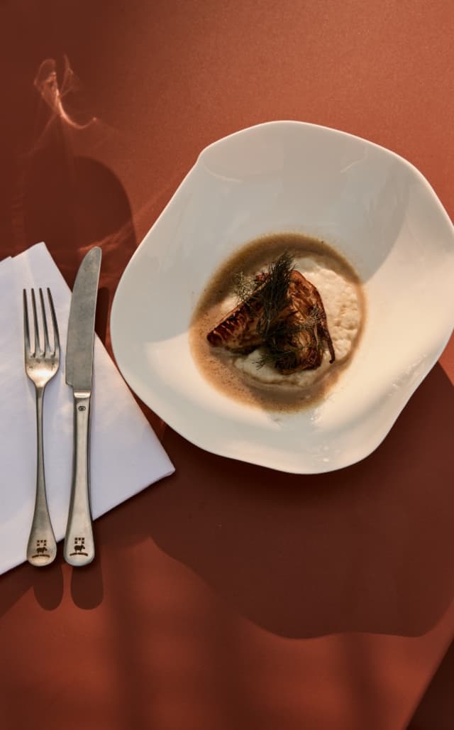 De aangebouwde stal van het voorhuis is omgetoverd tot restaurant, bar en een open keuken waar onze chefs graag een lekkere lunch voor je bereiden. De oude elementen van de boerderij zijn geïntegreerd in het interieur: de geschiedenis van de polder gecombineerd met het comfort van nu.