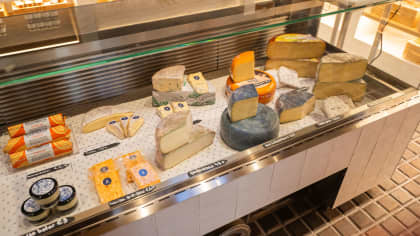 Veel van ons aanbod maken we zelf: (jong) belegen kaas, grillkaas en fiore di latte van onze kaasmaakster Dewi, en zelfgemaakte mosterd en zuurkool van chef Herb. Olivier bakt hartige quiches, zoete taarten, vers brood, croissants en andere baksels.