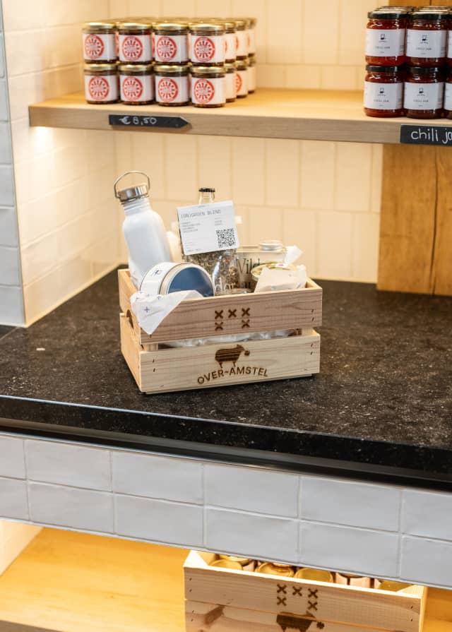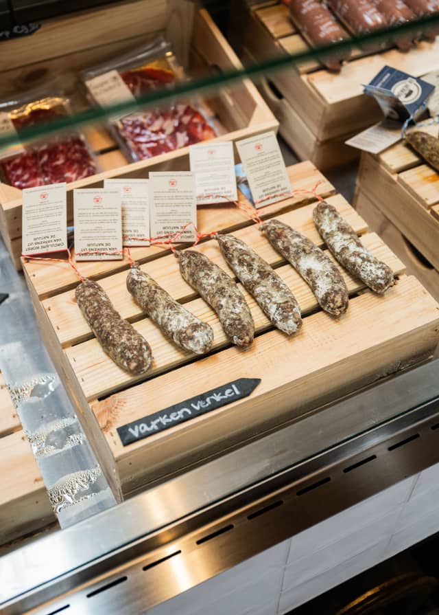 Daarnaast vind je mooie streekproducten: droge worst van De Herkomst, honing van imkers langs de Amstel, vlees van Wild van Wild, eieren van Boerderij Weilust en zout van Zeeuwsche Zoute.